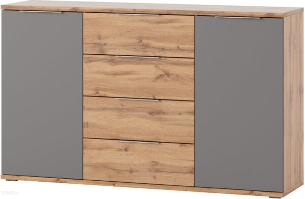 DANE TECHNICZNE:Linia: TrendlineSzerokość [cm]: 150Wysokość [cm]: 90Głębokość [cm]: 38Waga [kg]: 61Kolor: dąb wotanWymiary paczek: [1 z 2]: 161x40x10, 34kg; [2 z 2]: 107x47x10, 27kgIlość drzwiczek: 2Ilość półek: 2Ilość szuflad: 4Front – materiał: Płyta MDF oklejona folią PVC / płyta meblowa laminowanaBoki – materiał: Płyta meblowa laminowanaStojący/wiszący: StojącyMaksymalny udźwig półki: 5 kgPielęgnacja: lekko wilgotna szmatkaWyjątkowa stylistyka, interesujące połączenie kolorów oraz najwyższa funkcjonalność każdej z brył sprawia, że projekty z tej linii są w stanie sprostać nawet najbardziej wymagającym użytkownikom. Kolorystyka dębu wotan zestawiona z subtelnym odcieniem szarego bazaltowego uwydatnia wyraźny rysunek elementów pnia promieniowego. Meble z linii Livorno to projekty na miarę najpiękniejszych wyobrażeń .