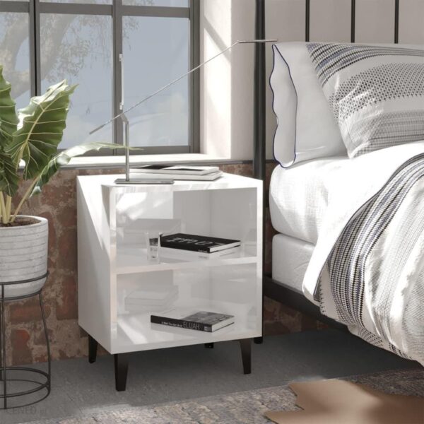 Vidaxl Szafka Nocna Z Metalowymi Nóżkami Biała Połysk 40X30X50 Cm 280091